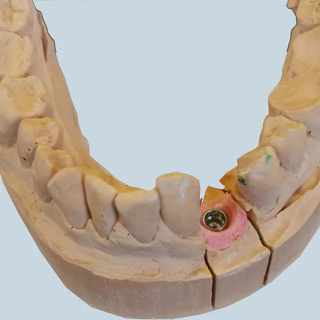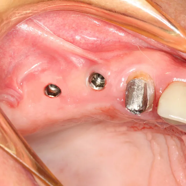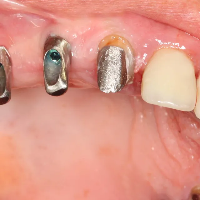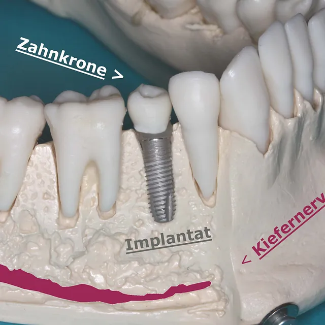 Einzelzahnverlust wird je nach Knochenbestand mit Implantaten korrigiert. Optional bieten wir auch Implantate aus Keramik an, was Allergien und Unverträglichkeiten entgegenwirken sollte. Keramikimplantate bieten eine hohe Verträglichkeit gegenüber dem Zahnfleisch und ähneln der Farbe der Zähne, was sich auf die Ästhetik vorteilhaft auswirkt.